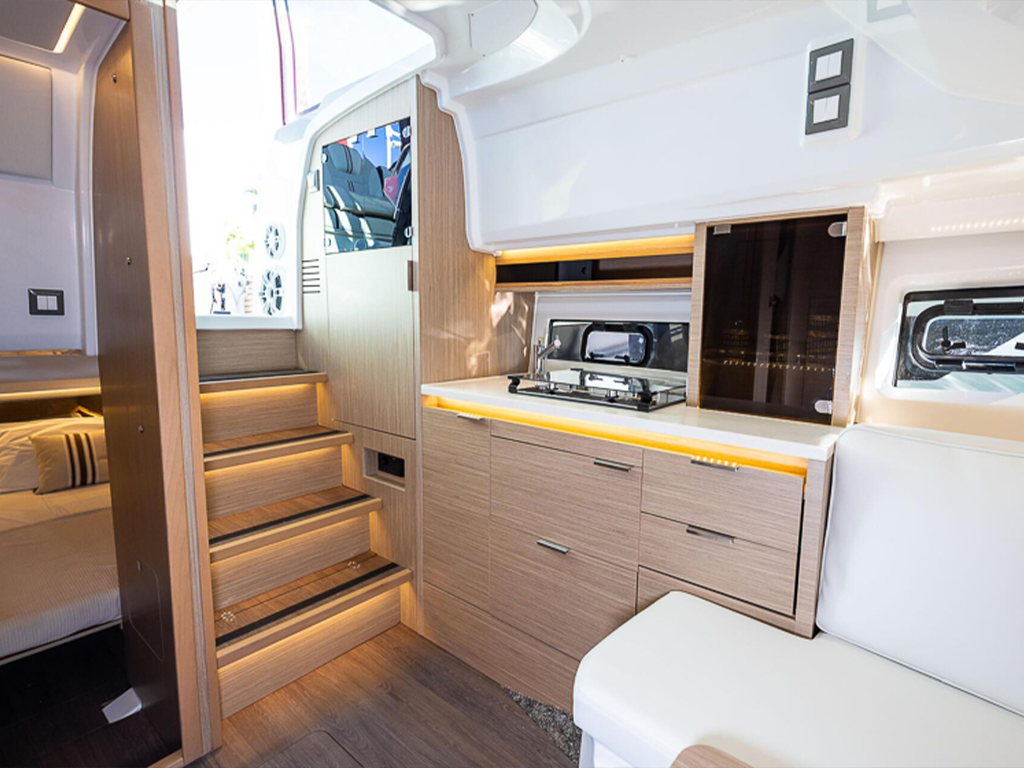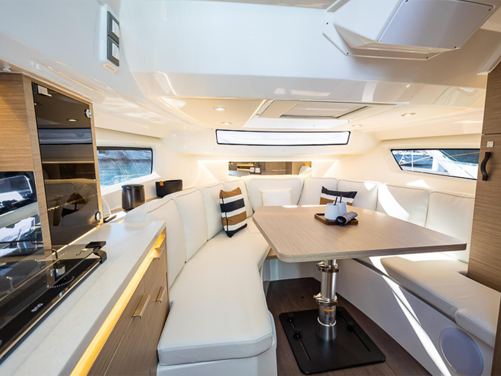 Son vaste cockpit, ses bains de soleil et sa cabine confortable en font le choix parfait pour une location de bateau à la journée avec skipper.